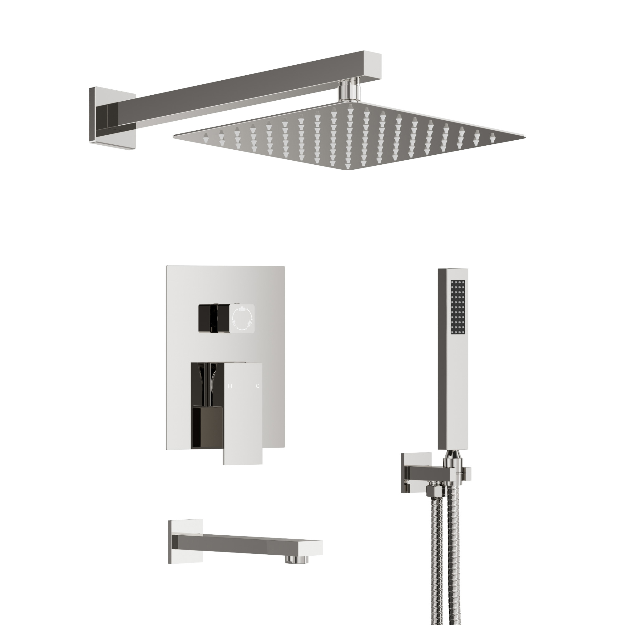 10 in. Wall Mount Shower Head Complete Tub and Shower Faucet Set with Valve in Polished Chrome
