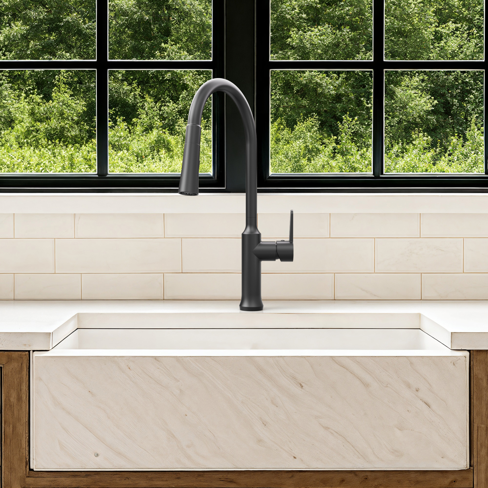 Upgrade your kitchen with this sleek and modern pull-down faucet, designed to blend timeless style with superior functionality. The high-arc spout provides ample clearance for large pots, while the flexible pull-down sprayer and 360° swivel reach every corner of your sink for effortless cleaning. Built from high-quality, corrosion-resistant materials, this faucet is engineered for lasting durability and a consistently flawless performance.