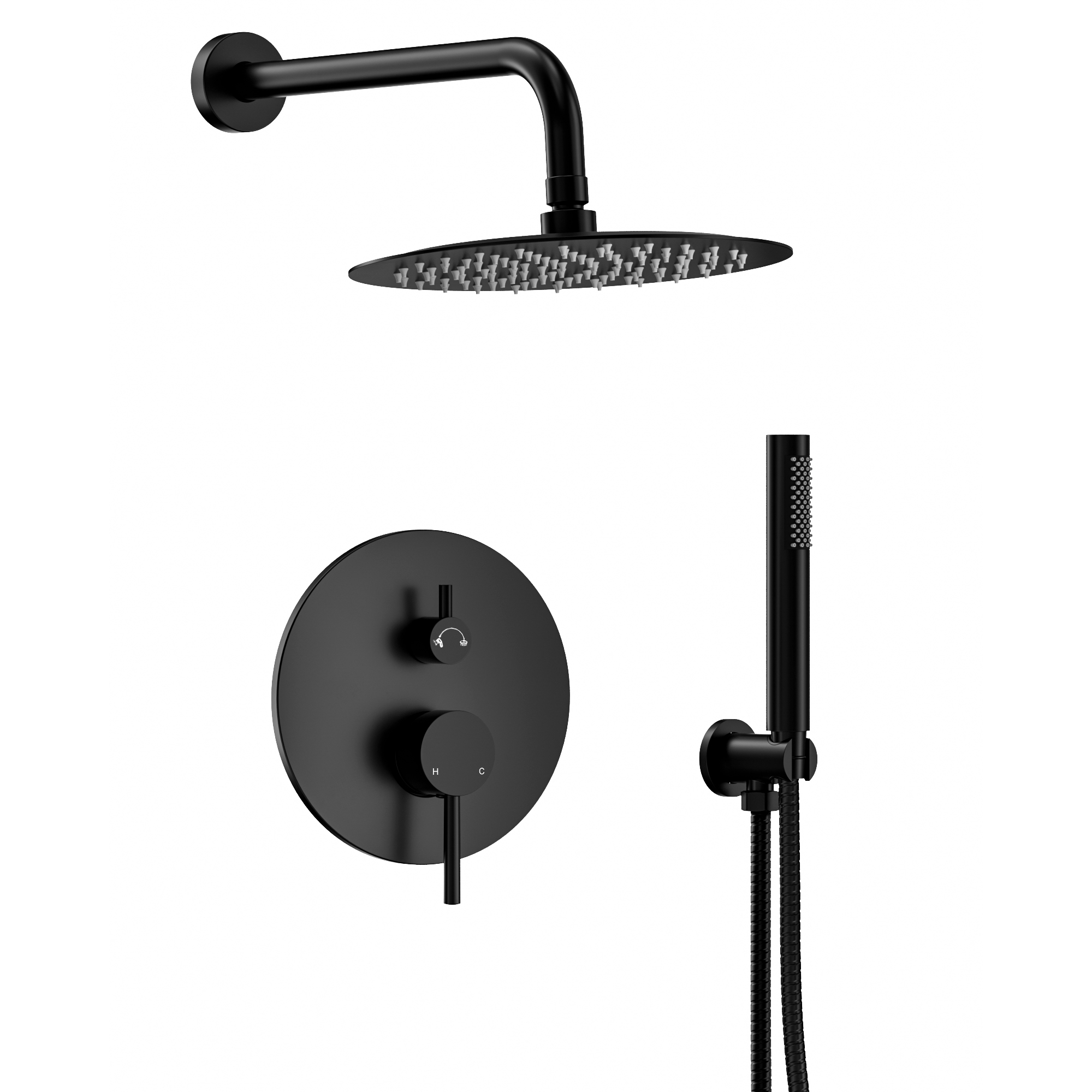 2-Handle 10 in. Round 2.5 GPM Wall Mount 2-Spray Shower Faucet in Pressure Balance (Valve Include) in Matte Black