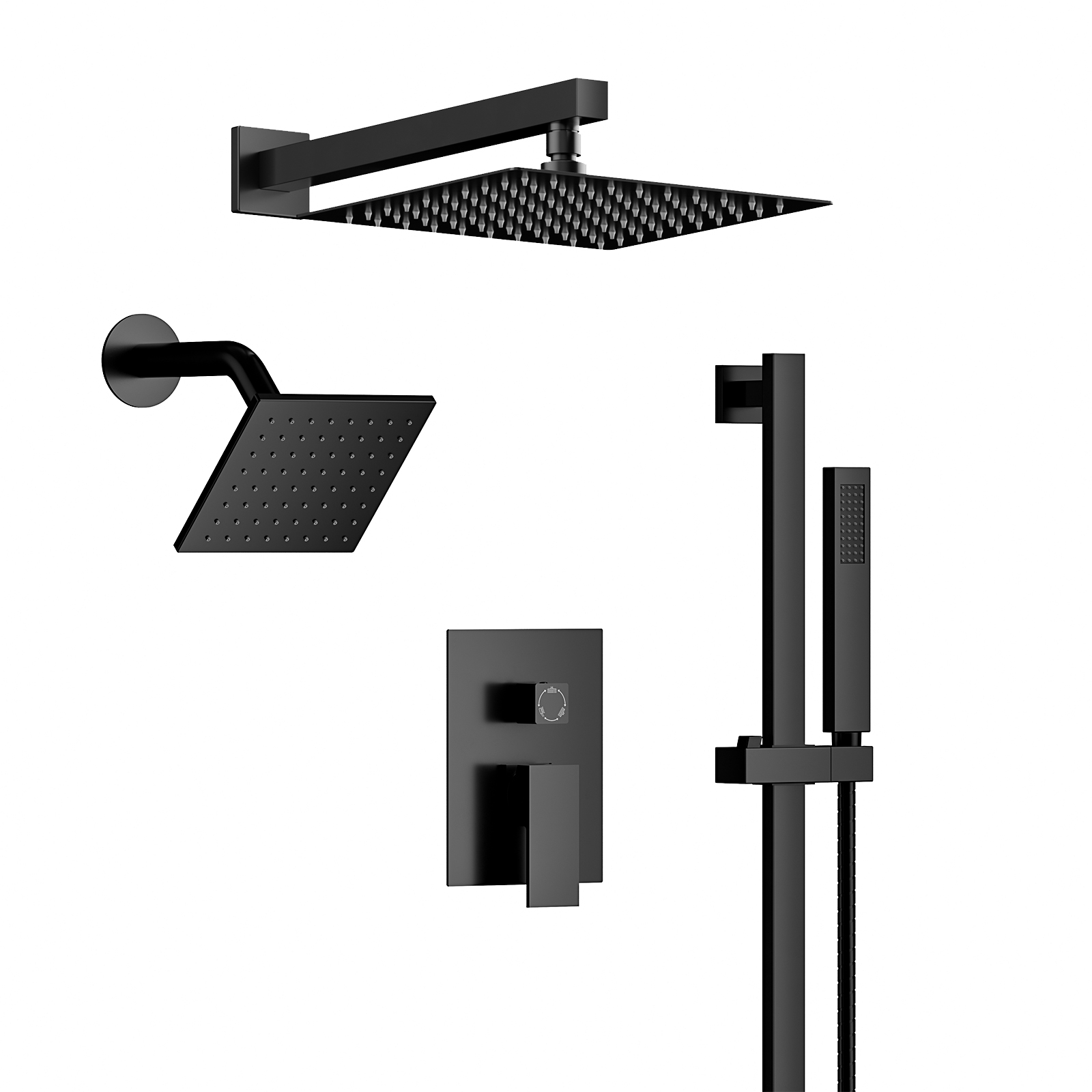 3-Spray 10 and 6 in. Wall Mount Dual Shower Heads and Handheld Shower Head (Valve Included) in Matte Black