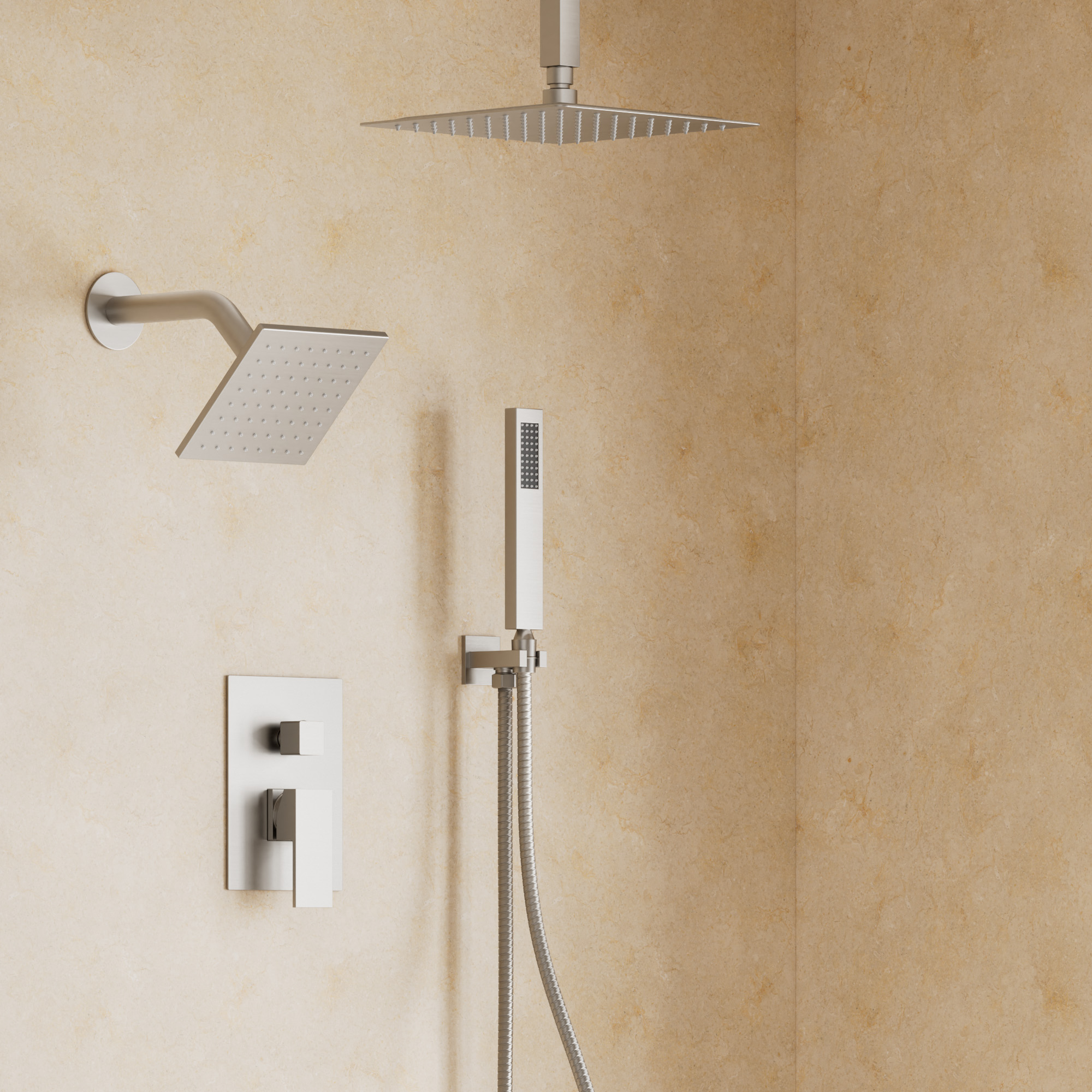 10 & 6 in. Ceiling Mount Dual Shower Heads 2.5 GPM Complete Shower System(Valve Included) in Brushed Nickel