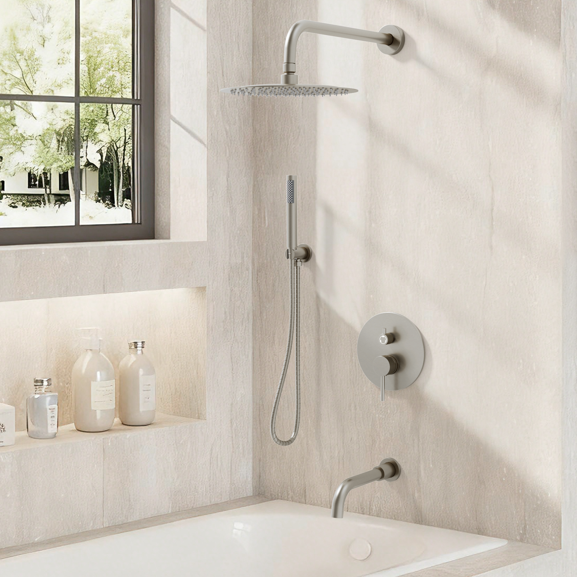 Upgrade your bathing experience with the YAWWALK 3-in-1 Shower System. Featuring a large 10 in. showerheady, hand shower and tub faucet, it's perfect for both soothing rinses and enjoyable showers. The core of the system features the industry-leading Hain-Yo pressure balance valve, which has been tested up to 600,000-times to ensure stable, scald-resistant water flow and peace of mind every time you take a shower. The entire body is made of stainless steel with a brushed surface that is not only fingerprint-proof and waterproof, but also exudes an understated luxury luster that easily blends into a variety of styles of bathroom design. What's more, we offer a limited lifetime warranty for consistent quality. Let YAWWALK help you create your own exquisite bath time.