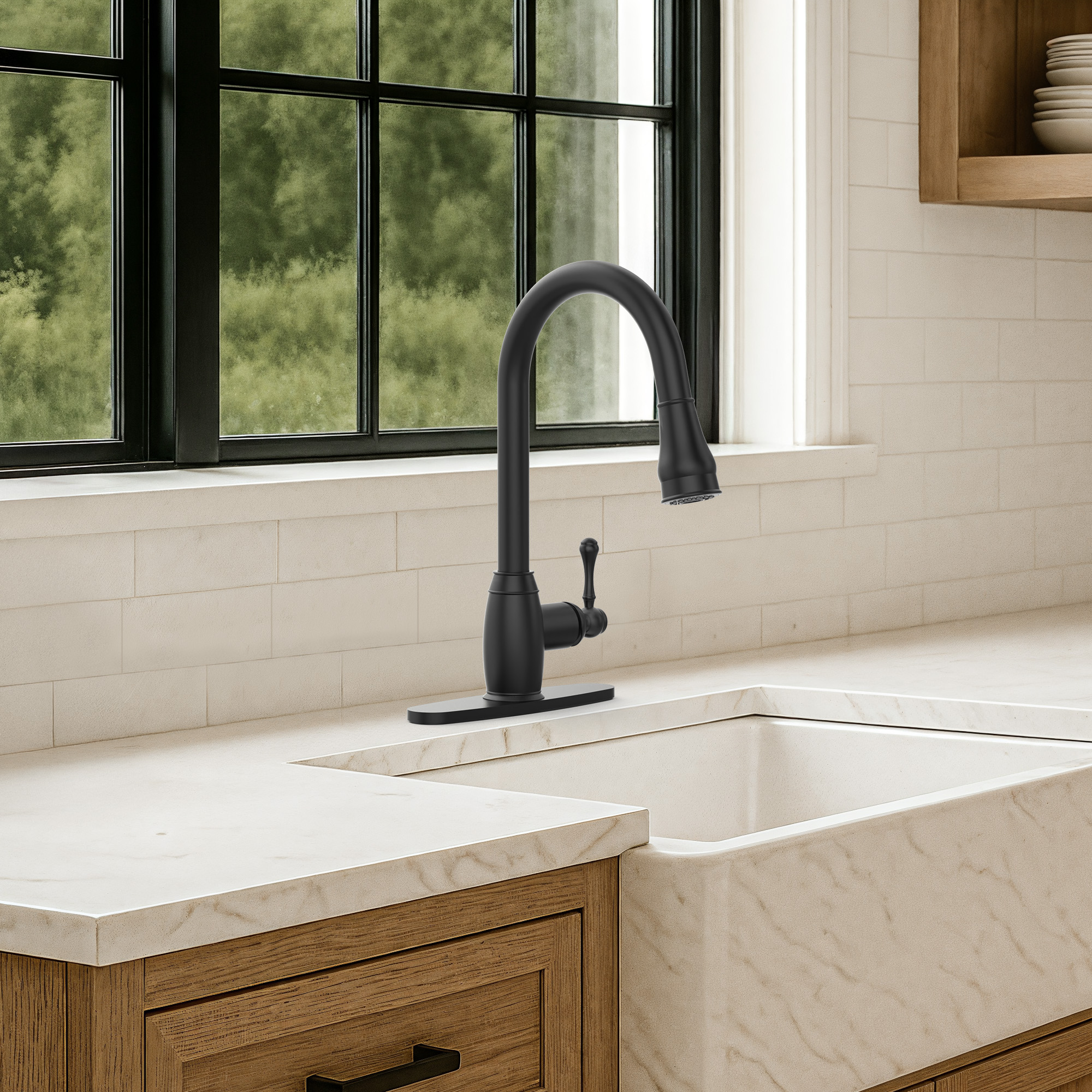 Refresh your kitchen with this elegantly designed pull-down faucet, where timeless style meets modern convenience. Tackle any task with ease using the dual-function spray head, switching from a gentle, aerated stream for filling to a powerful spray for rinsing with the simple push of a button. Combined with a 360° swivel spout and a spot-resistant finish, this faucet not only enhances your decor but also stands up to the demands of daily use, ensuring lasting beauty and performance.