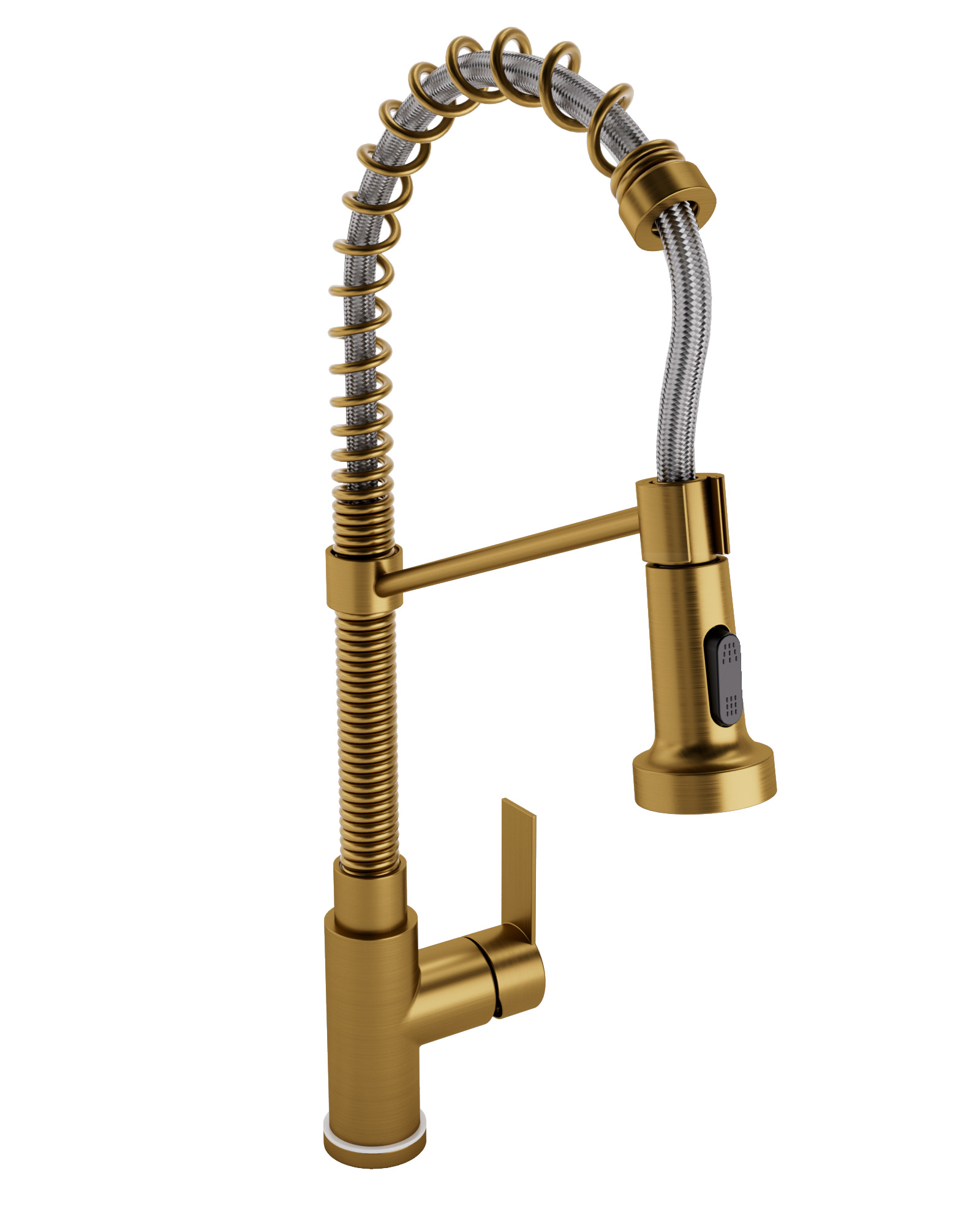 Single Handle Pull Down Sprayer Kitchen Faucet 1.8 GPM with LED Base, 20.1 in. Height, 360° Swivel Spout in Brushed Gold