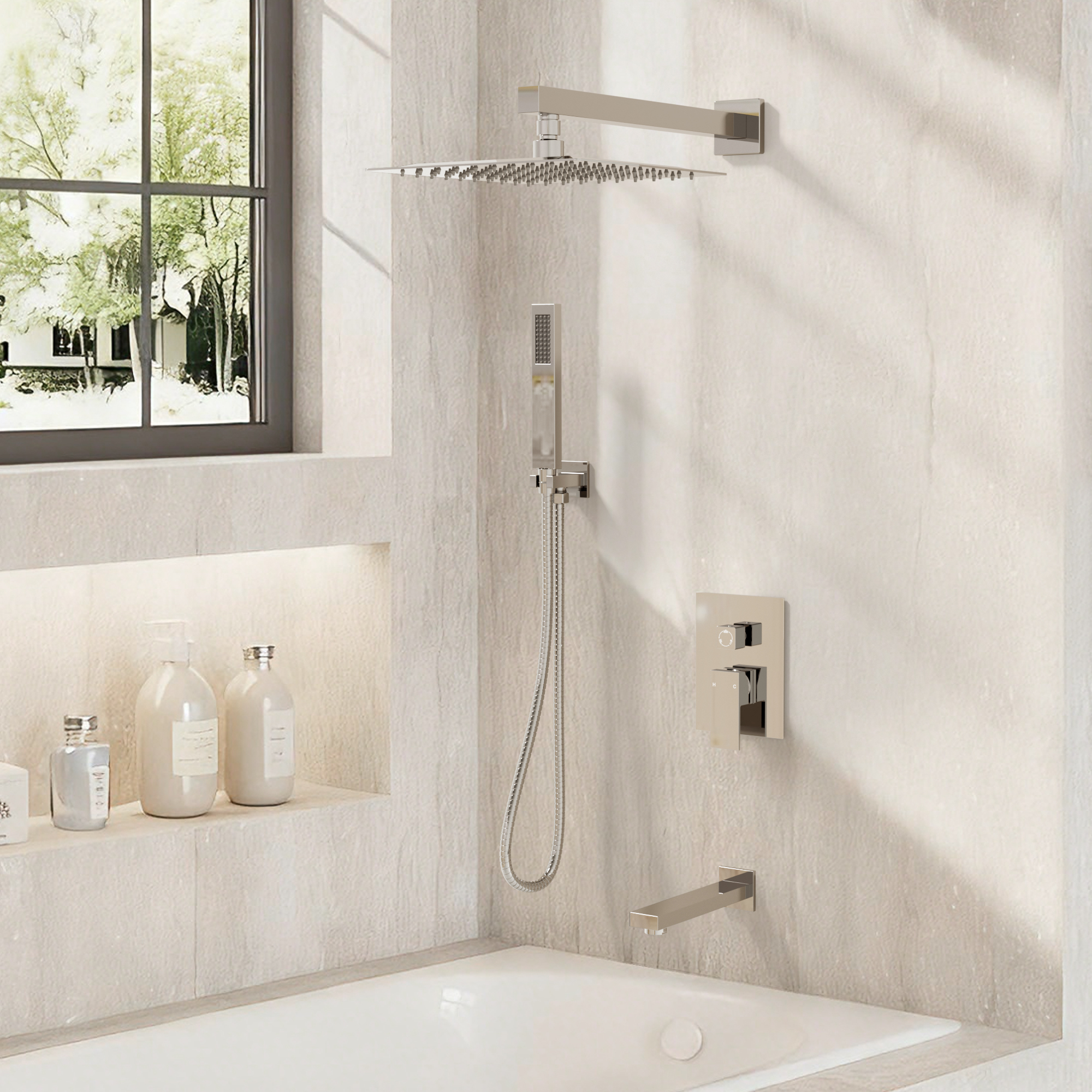 Transform your daily routine with the YAWWALK 3-in-1 Shower System. Featuring a space-efficient 10 in. rain shower head, versatile handheld shower, and sleek bathtub faucet, this set brings spa-like comfort to your home. Built with premium Hain-Yo valves and cutting-edge anti-scald technology, it ensures a tranquil, leak-free performance. Perfect for families with seniors and kids, this system offers safety and sophistication. Its elegant design complements any decor, while advanced plating technology keeps it fingerprint-free and gleaming. Enjoy peace of mind with a limited lifetime warranty and reliable CEC and cUPC certifications. Elevate your bathroom into a haven of relaxation and style.