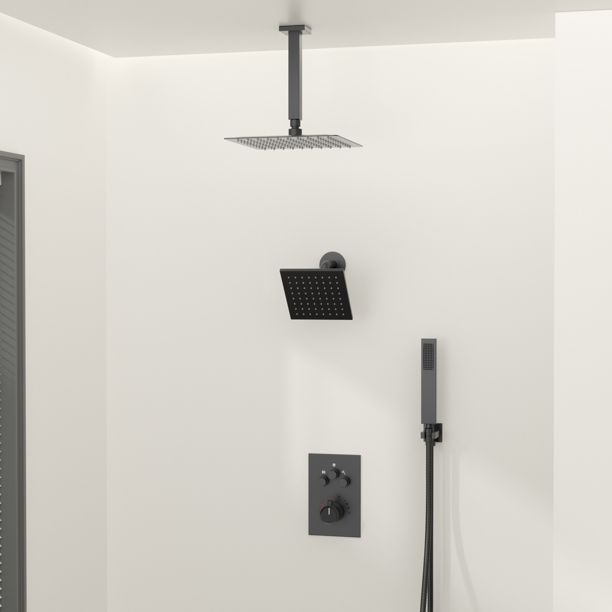 Discover the excellence of the YAWWALK dual shower head system! This product features 12-inch and 6-inch square shower heads that can be easily switched to meet your diverse needs. The handheld shower comes with a 59-inch extendable hose, making it easy to rinse every corner, perfect for everything from daily cleaning to relaxing soaks. The thermostatic function locks the water temperature at 100℉, while allowing smooth adjustments via a control knob, ensuring a comfortable and worry-free shower experience. Its premium surface treatment offers both corrosion resistance and modern aesthetics, complemented by a limited lifetime warranty for your peace of mind. Choose YAWWALK and embark on a new journey of shower enjoyment!
