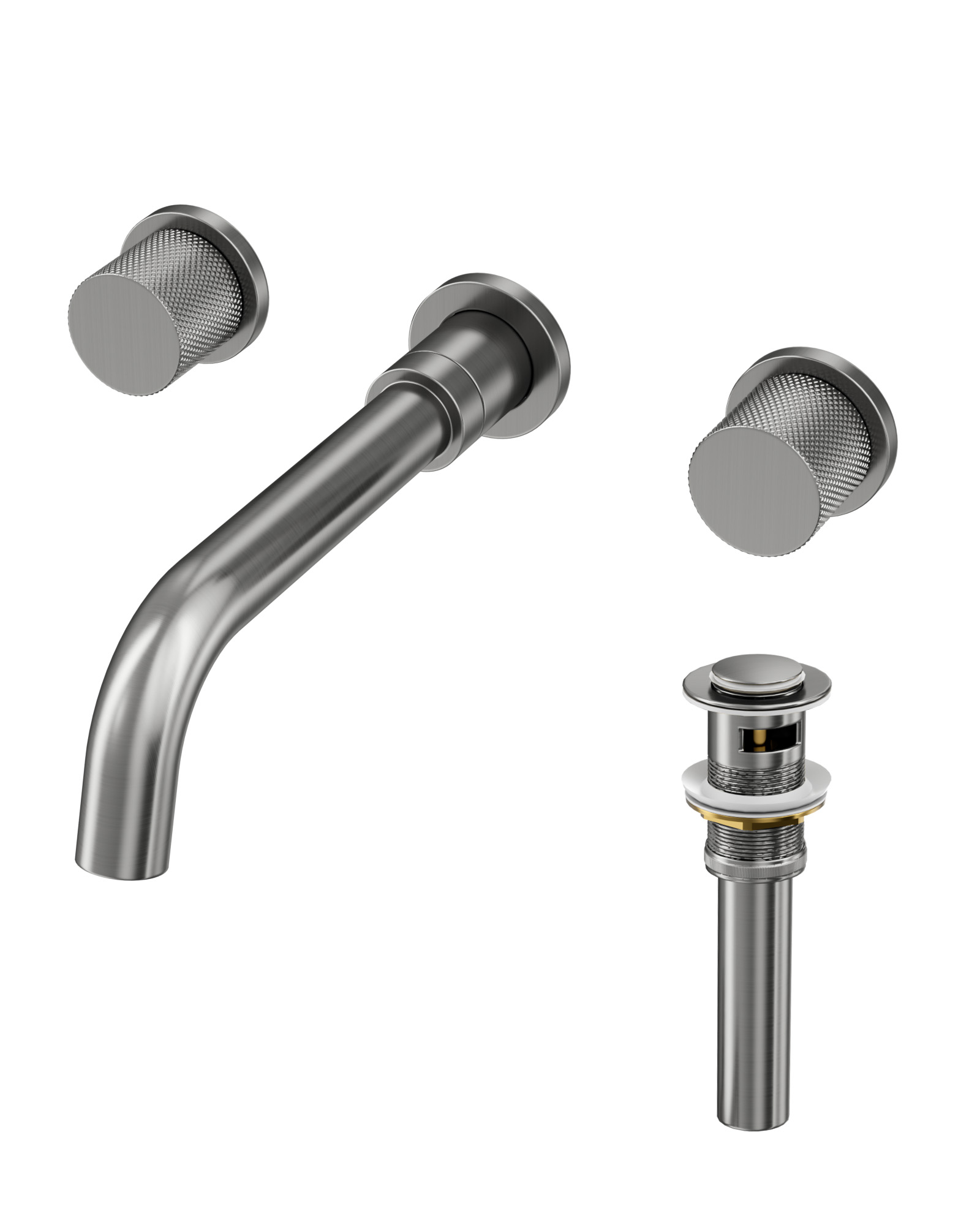 Transform your bathroom with the YAWWALK Wall Mount Bathroom Faucet in Matte Black, a perfect blend of modern design and practical functionality. Featuring smooth dual-handle control for precise adjustment of hot and cold water, this faucet delivers a soft, splash-free stream with a high-efficiency flow rate of 4.5L/min (1.19 GPM) through its built-in aerator. The 360° swivel spout enhances convenience and flexibility, making it ideal for wider sinks or shared spaces. Crafted from durable all-metal materials-including solid brass, stainless steel, and zinc alloy-this faucet is built to last, resisting rust and corrosion in humid environments. Its elegant knurled handle detail not only adds visual appeal but also improves grip during use, while the anti-fingerprint matte finish keeps it clean and stylish effortlessly. Complete with a matching pop-up drain assembly, this faucet is designed for easy wall-mount installation and comes in three refined finishes-Matte Black, Brushed Gold, and Brushed Nickel-to perfectly complement any contemporary or transitional bathroom decor.