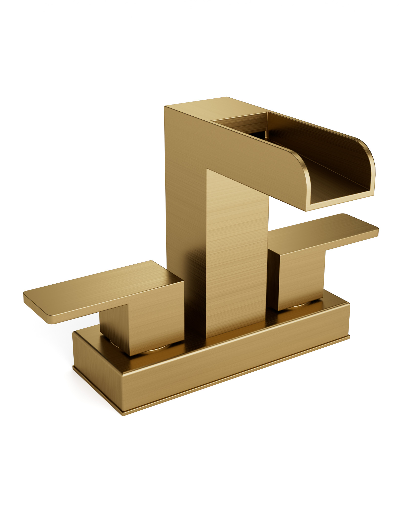 Enhance your bathroom with this stylish 4 in. Centerset double-handle faucet, featuring a modern waterfall spout and an included valve for straightforward installation. Its contemporary design brings a refined look to any vanity and is offered in 3-eye-catching finishes-Matte Black, Brushed Gold, and Brushed Nickel-to effortlessly match various decor themes, from sleek and modern to bold and luxurious. The dual handles offer smooth, accurate temperature adjustment, while the widespread layout adds a sophisticated touch. Ideal for both guest baths and master suites, this faucet beautifully complements marble countertops, vessel sinks, and tiled vanities, creating a striking and cohesive centerpiece in your bathroom.