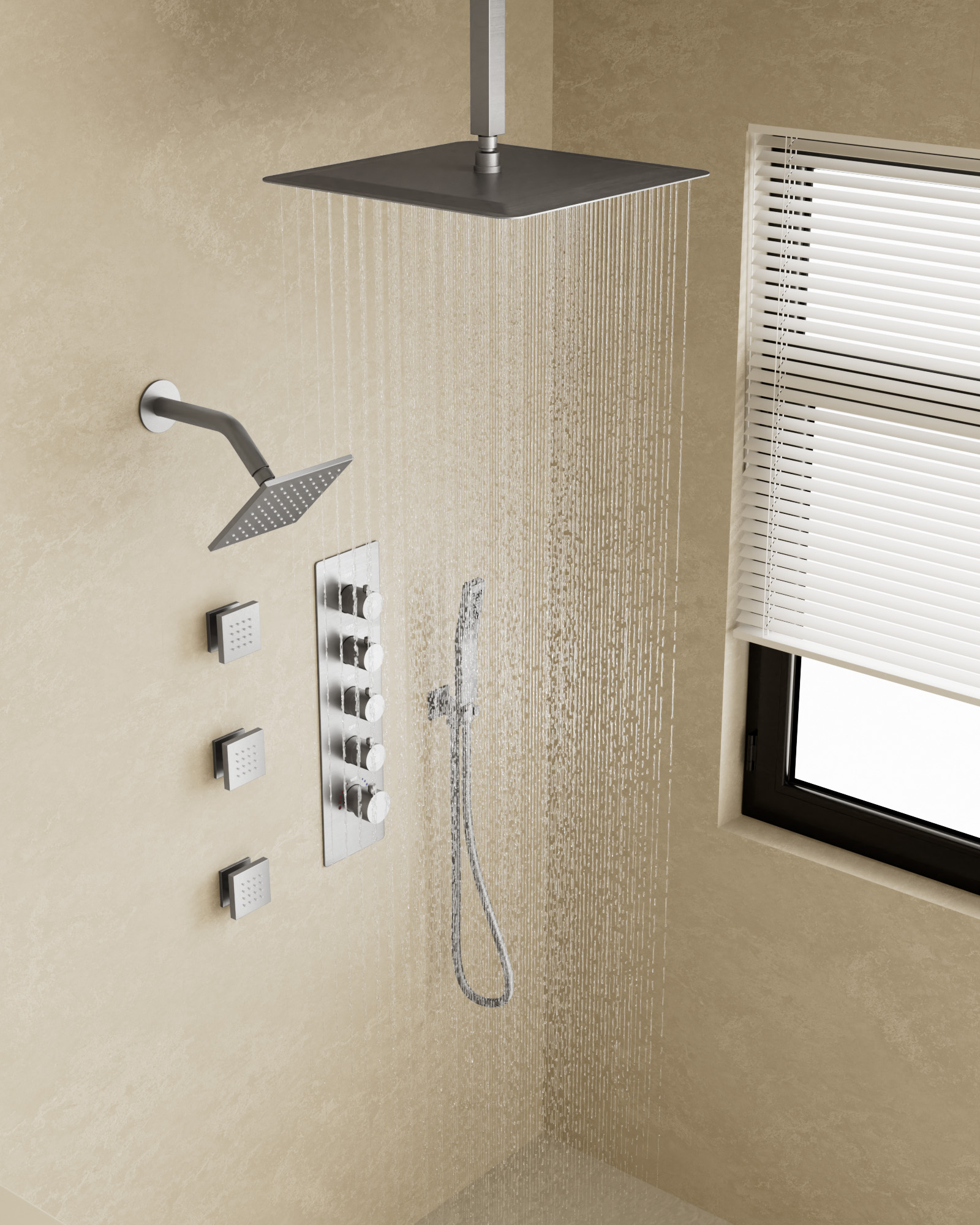- 【15-Spray Patterns】The 2 shower heads, 3 body jets and the handheld shower can be used individually or both at the same time