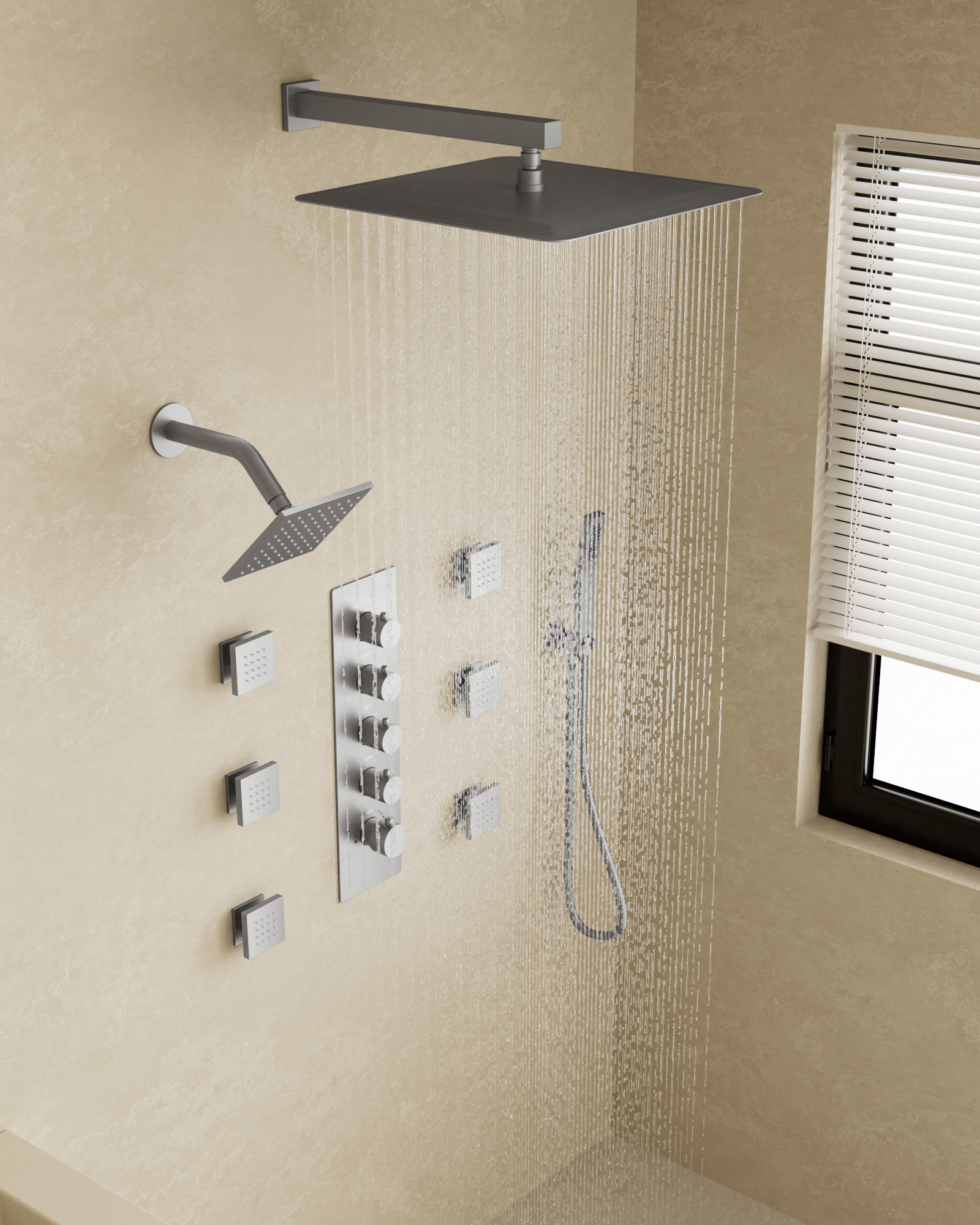 - 【15-Spray Patterns】The 2 shower heads, 3 body jets and the handheld shower can be used individually or both at the same time