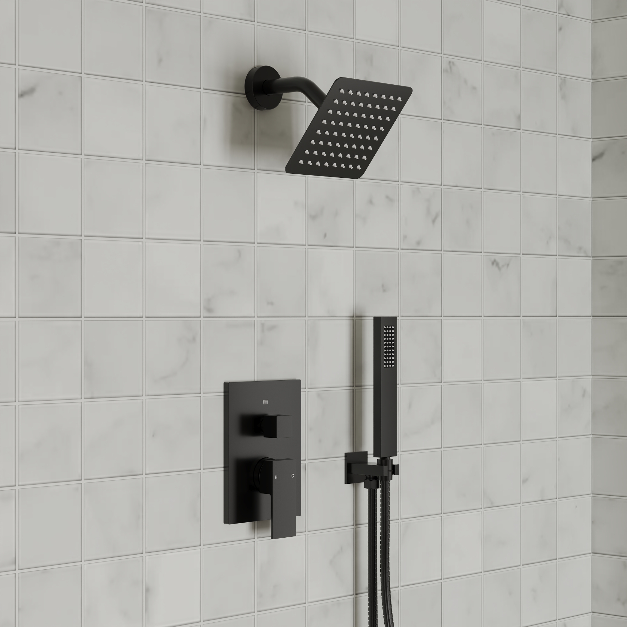 This shower system features a sleek brushed finish for a refined, elegant look. The 6 in. wall-mounted shower head provides smooth, even water flow for a relaxing experience, while the handheld shower offers flexibility and convenience. With its stylish yet versatile design, it effortlessly complements any bathroom decor, adding both comfort and sophistication to your space.