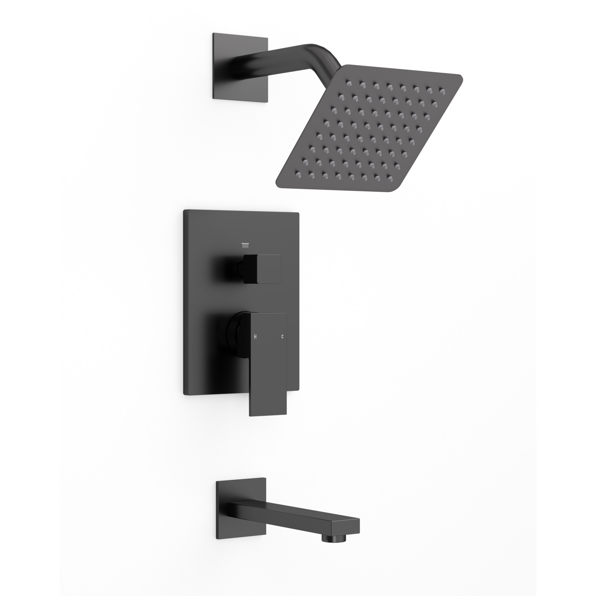 • 2-1 combo design - includes matching square tub spout and single-lever handle for effortless control over both bath and shower functions