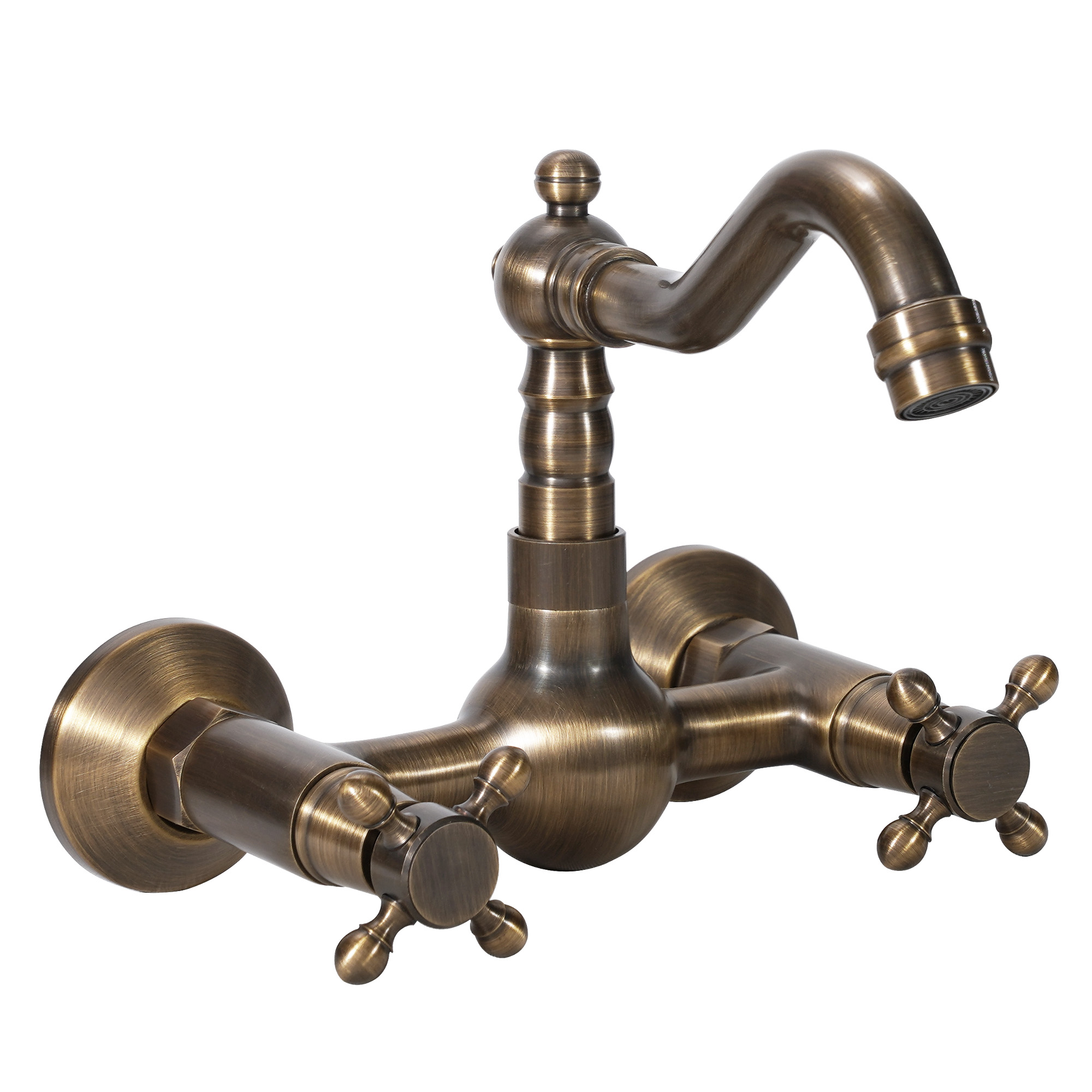 Transform your bathroom with this stunning antique brass wall-mounted faucet, seamlessly combining traditional charm with contemporary functionality. Its vintage design infuses any space with a timeless elegance, while the dual-handle configuration allows for meticulous control over water temperature and flow. Expertly crafted from high-quality stainless steel for enduring durability and corrosion resistance, this faucet promises dependable performance for years ahead. The wall-mounted installation not only frees up precious countertop area but also imparts a luxurious flair to your bathroom decor.